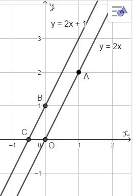 Nhận xét: Hai đường thẳng y = 2x và y = 2x + 1 song song với nhau.