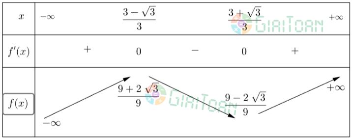 Cho y' = 0 thì 3x2 - 6x + 2 = 0