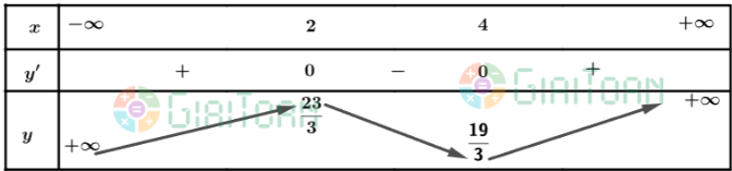 Vậy hàm số có điểm cực tiểu x = 4 và điểm cực đại x = 2.