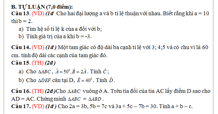 Đề thi học kì 2 Toán 7 năm học 2021 - 2022 Đề số 2