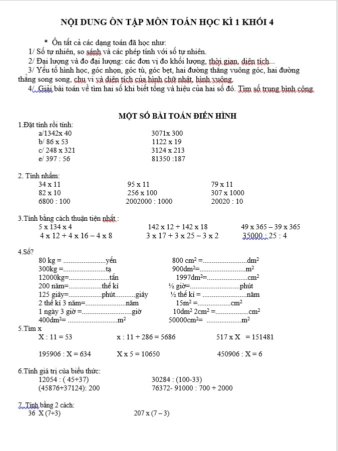 Bài tập cuối tuần Toán lớp 4 Kết nối tri thức - Tuần 19