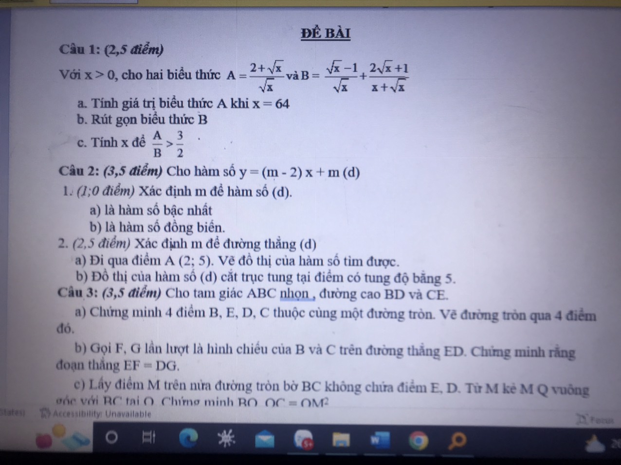 Đề thi Toán 8 học kì 2 -