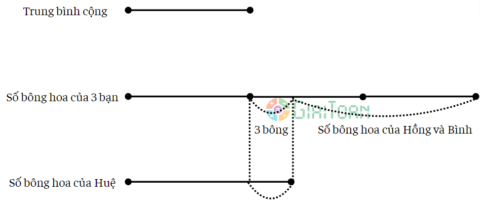 + Bước 2: Tính trung bình cộng số bông hoa của 3 ban