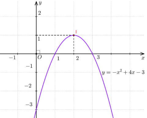 Hàm số y = – x2 + 4x – 3 có a = – 1 nên đồ thị hàm số là một parabol có bề lõm hướng xuống dưới, đỉnh I(2; 1):