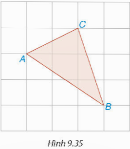 Luyện tập 1 (sgk trang 95): Trên giấy kẻ ô vuông (cạnh ô vuông bằng 1 cm), cho các điểm A, B, C như Hình 9.35. Tính độ dài các cạnh của tam giác ABC.