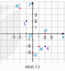 Luyện tập 2 (sgk trang 43): a) Xác định tọa độ các điểm M, N, P, Q trong Hình 7.5. b) Xác định các điểm R(2; –2) và S(–1; 2) trong Hình 7.5.