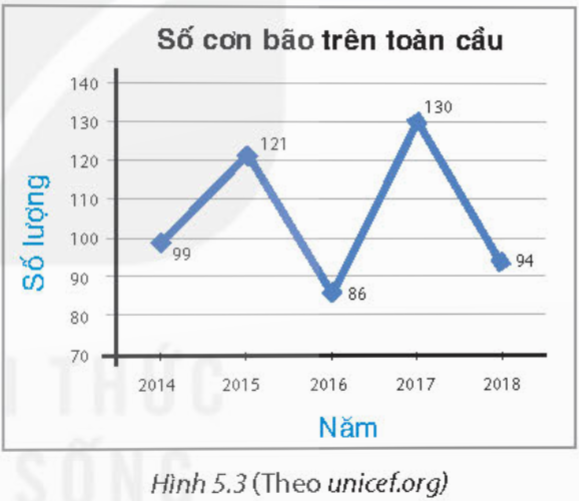 Nếu ta có dữ liệu về số cơn bão hằng năm trên toàn cầu từ năm 1970 đến nay thì ta nên dùng biểu đồ đoạn thẳng để biểu diễn.