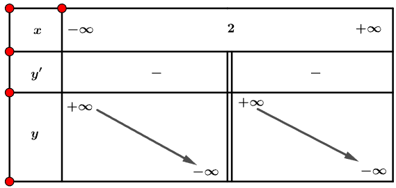 với mọi x ≠ 2. - Hàm số nghịch biến trên từng khoảng (- ∞; 2) và (2; + ∞).