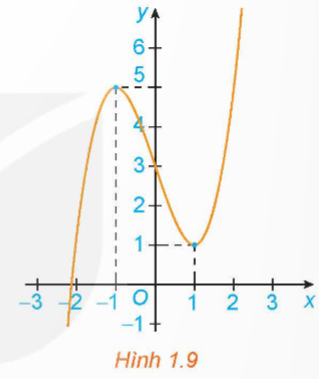Luyện tập 4 trang 10 toán 12 tập 1: Hình 1.9 là đồ thị của hàm số y = f(x). Hãy tìm các cực trị của hàm số.