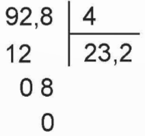 ![]() | • 9 chia 4 được 2, viết 2; 2 nhân 4 bằng 8; 9 trừ 8 bằng 1, viết 1. • Hạ 2 được 12; 12 chia 4 được 3, viết 3; 3 nhân 4 bằng 12; 12 trừ 12 bằng 0, viết 0. • Viết dấu phẩy vào bên phải 3. • Hạ 8; 8 chia 4 được 2, viết 2; 2 nhân 4 bằng 8; 8 trừ 8 bằng 0, viết 0. |