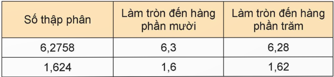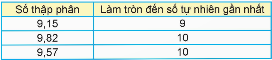Khi làm tròn số thập phân đến số tự nhiên gần nhất, ta so sánh chữ số ở hàng phần mười với 5. Nếu chữ số hàng phần mười bé hơn 5 thì làm tròn xuống, còn lại thì làm tròn lên.