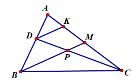 Ví dụ 1: Cho tam giác ABC, trung tuyến BM cắt tia phân giác CD tại P. Chứng minh rằng: