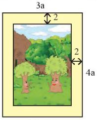 Câu 1: Một khung ảnh hình chữ nhật với hai cạnh liên tiếp bằng 3a cm và 4a cm với bề rộng bằng 2 cm. Viết biểu thức biểu thị diện tích của tấm ảnh trong Hình sau.