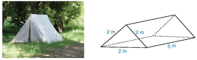 Diện tích vải để làm hai mái và trải đáy của lều chính là diện tích xung quanh hình lăng trụ: