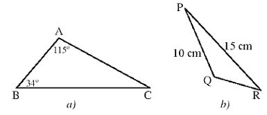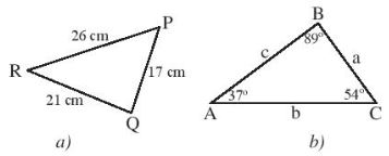 a) Sắp xếp theo thứ tự từ nhỏ đến lớn số đo các góc của tam giác PQR trong Hình a.