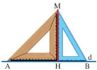 Ví dụ: Trong hình sau, MH là đường vuông góc còn MA và MB là các đường xiên kẻ từ điểm M đến đường thẳng d. Ta có MH là đường ngắn nhất trong các đường MH, MA, MB.
