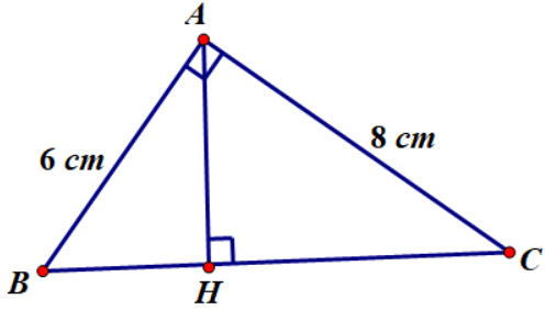 Ví dụ 1: Cho tam giác ABC vuông tại A có AB = 6cm, AC = 8 cm. Tính độ dài các đoạn thẳng BC, CH, BH.
