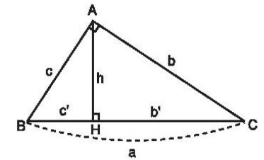 - Hình chiếu của AC và AB lên cạnh huyền BC lần lượt là CH = b’, BH = c’
