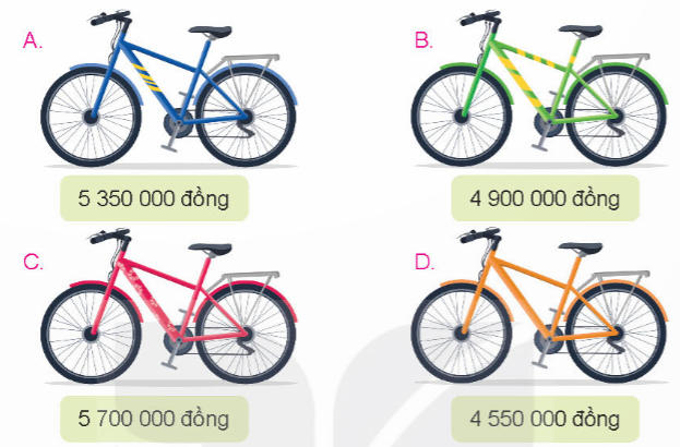 b) Xe đạp nào dưới đây có giá tiền thấp nhất?