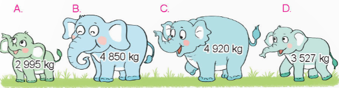Ta có: 2 995 kg < 3 527 kg < 4 850 kg < 4 920 kg
