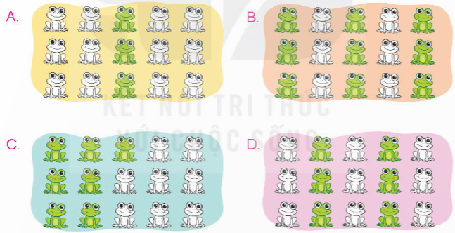 b) Số con ếch trong mỗi đáp án được xếp thành 5 cột.