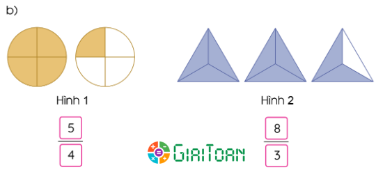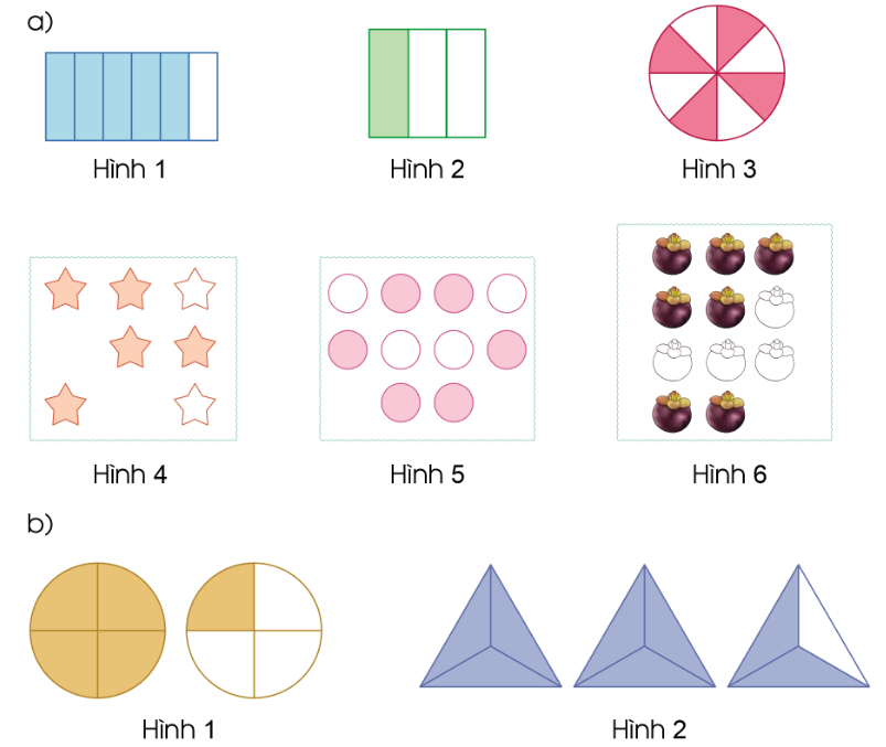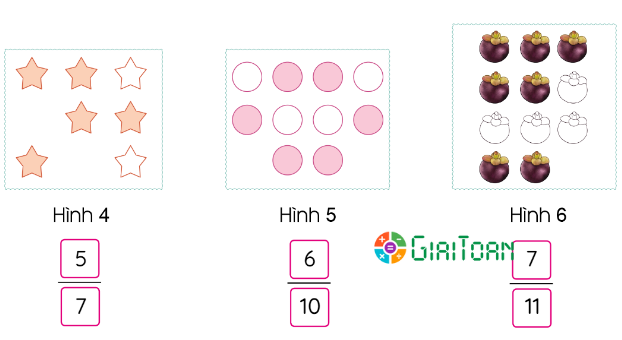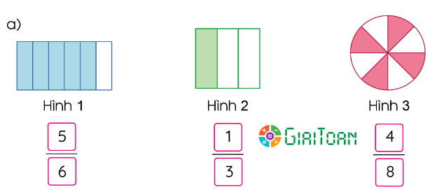 Quan sát hình vẽ và nêu phân số thích hợp.