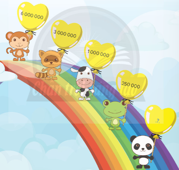 Vậy quả bóng của Gấu Trúc ghi số: 250 000 : 5 = 50 000.