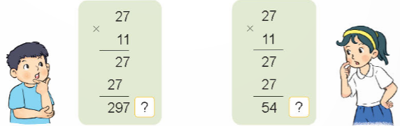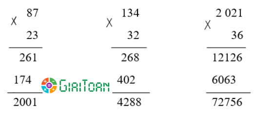 Đặt tính: Tính tích riêng thứ nhất và tích riêng thứ hai (được viết lùi sang trái một cột so với tích riêng thứ nhất) rồi tính tổng