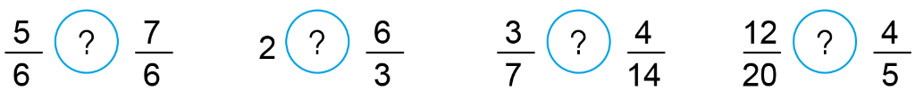 a) >, <, =?