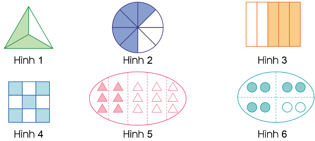 Nêu phân số chỉ số phần đã tô màu trong mỗi hình sau:
