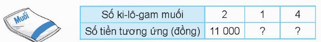 | Số ki-lô-gam muối | 2 | 1 | 4 |