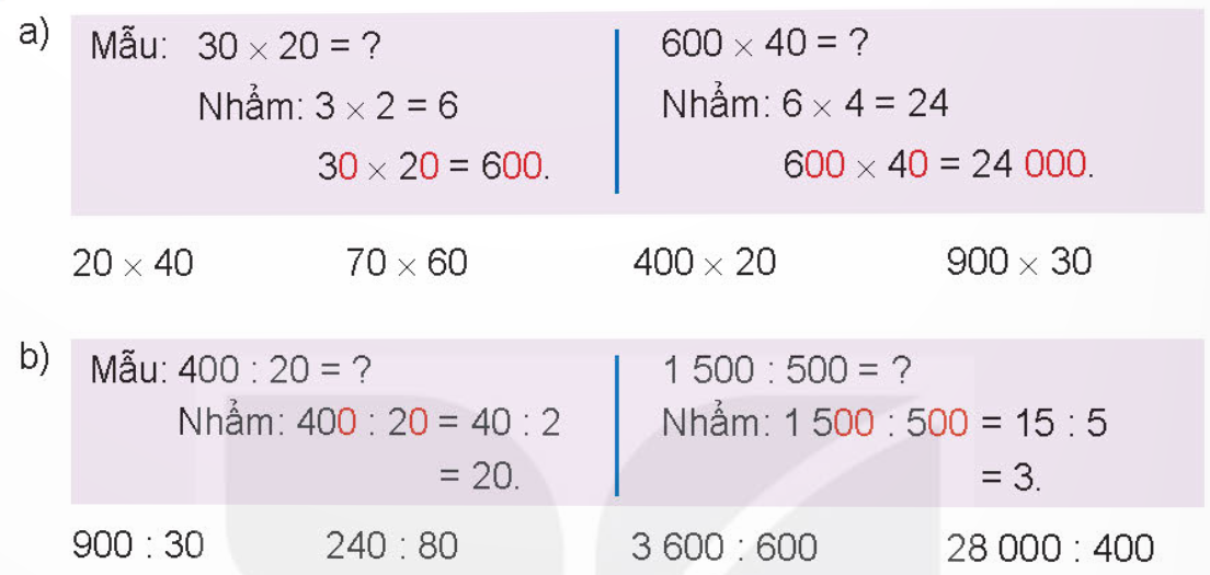 Khi chia số tròn chục, tròn trăm, tròn nghìn,... cho 10, 100, 1 000,... ta bỏ bớt đi một, hai, ba,... chữ số 0 ở bên phải số đó.