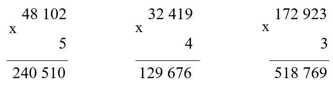 Đặt tính và thực hiện phép nhân lần lượt từ phải qua trái.
