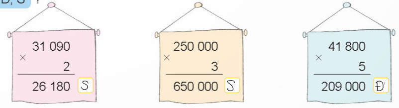 Thực hiện phép tính và kiểm tra tính đúng, sai.