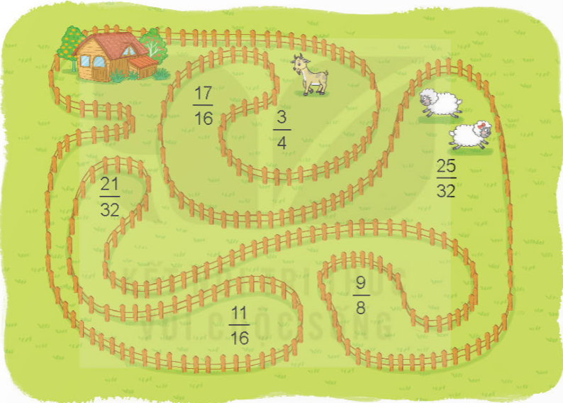 Hãy sắp xếp các phân số ở trong hàng rào theo thứ tự từ bé đến lớn.