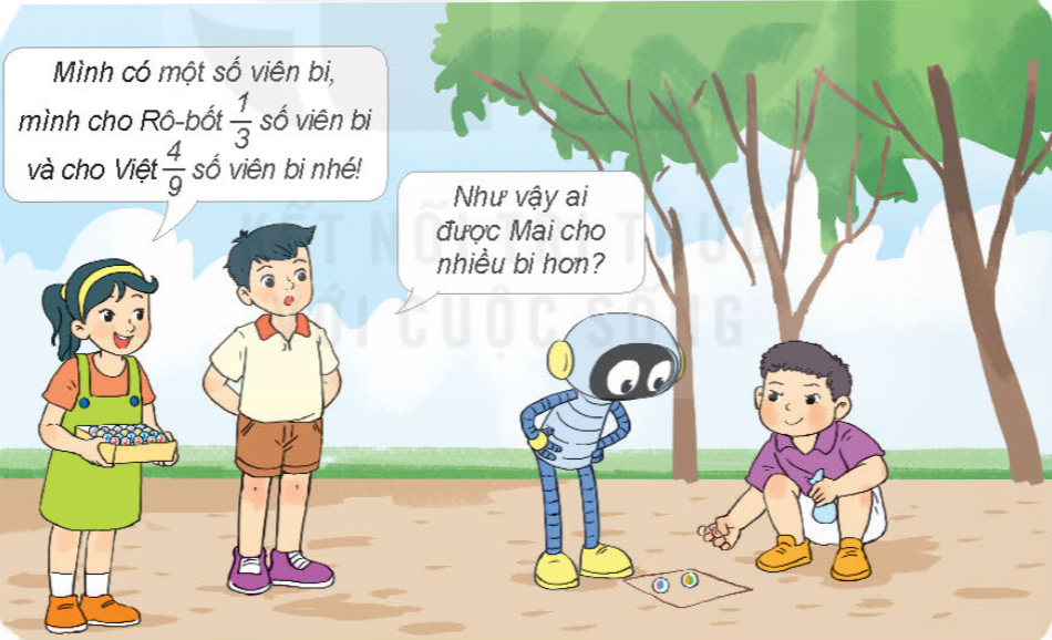 b) Việt nói: Mình được Mai cho nhiều bi hơn Rô-bốt. ![]()