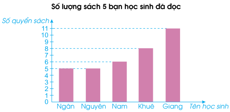 b) Bạn Giang đã đọc nhiều quyển sách nhất (11 quyển)