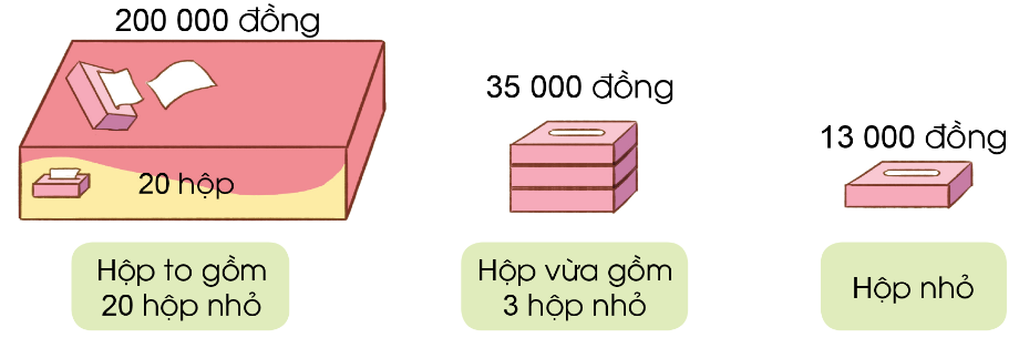 Quan sát giá bán của mỗi loại hộp giấy trong hình vẽ sau: