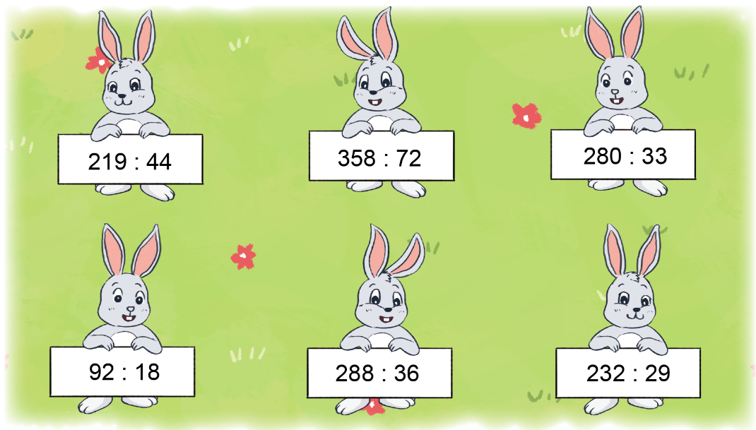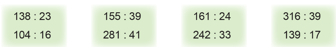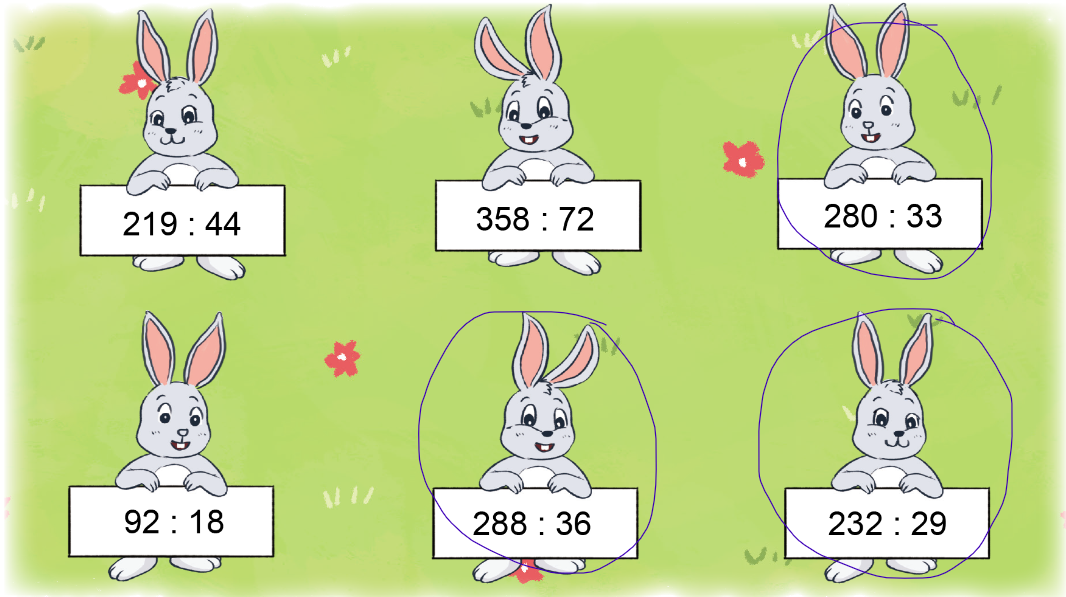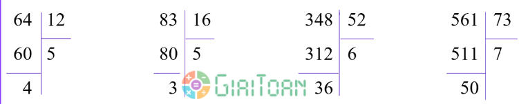 Thực hiện các phép chia và tìm phép chia có thương lớn hơn 5.