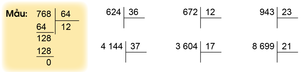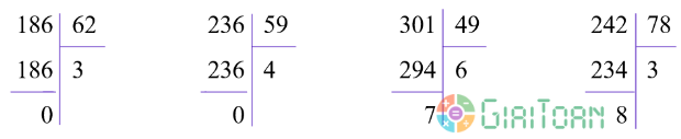 Đặt tính rồi thực hiện chia lần lượt từ trái sang phải.