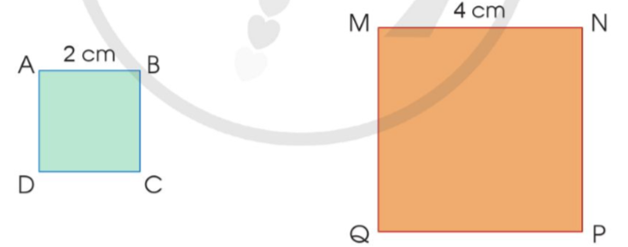 a) Nêu tỉ số giữa độ dài cạnh của hình vuông ABCD với độ dài cạnh của hình vuông MNPQ.