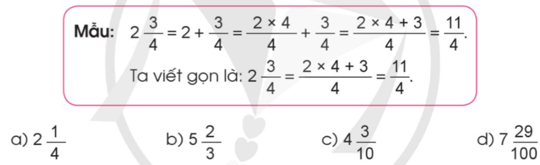 Chuyển các hỗn số sau thành phân số (theo mẫu):
