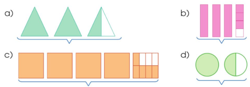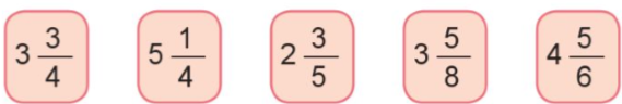 c) Viết một hỗn số rồi đố bạn chỉ ra phần nguyên, phần phân số của hỗn số đó.