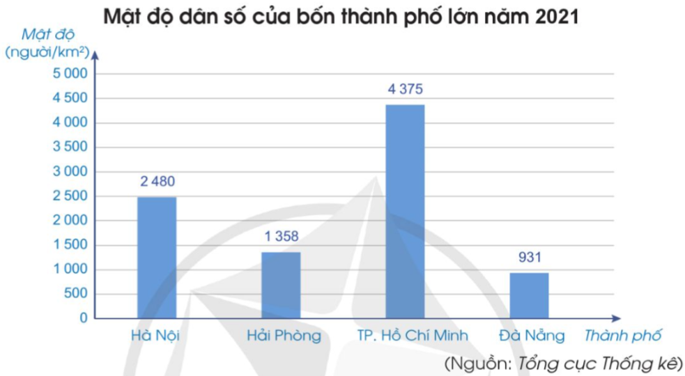 a) Thành phố có mật độ dân số lớn nhất là thành phố Hồ Chí Minh.