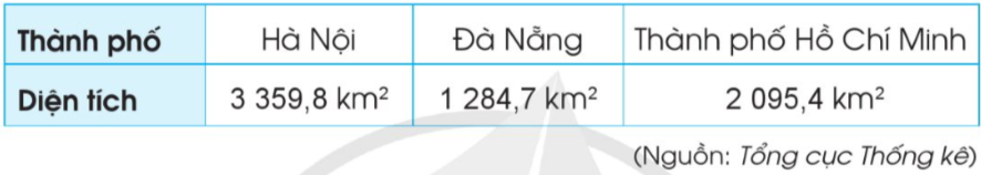 Bảng sau cho biết diện tích của ba thành phố (theo số liệu năm 2021):