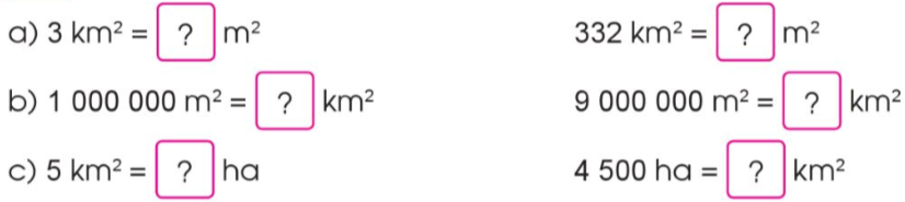 a) 3 km2 = 3 000 000 m2