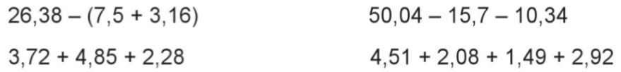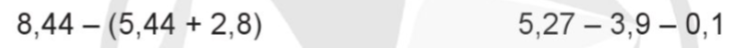 b) 8,44 - (5,44 + 2,8) = 8,44 - 5,44 - 2,8 = 3 - 2,8 = 0,2 | 5,27 - 3,9 - 0,1 = 5,27 - (3,9 + 0,1) = 5,27 - 4 = 1,27 |