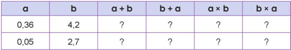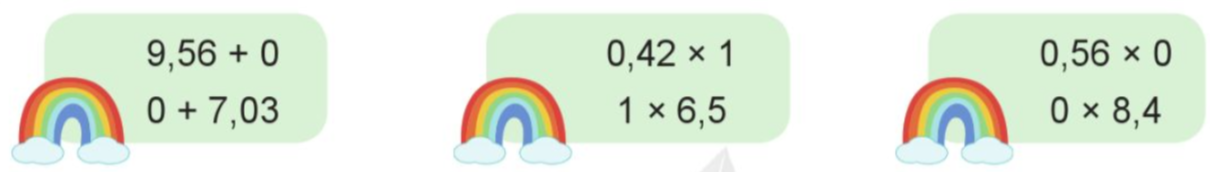 9,56 + 0 = 9,56 0 + 7,03 = 7,03 | 0,42 x 1 = 0,42 1 x 6,5 = 6,5 | 0,56 x 0 = 0 0 x 8,4 = 0 |