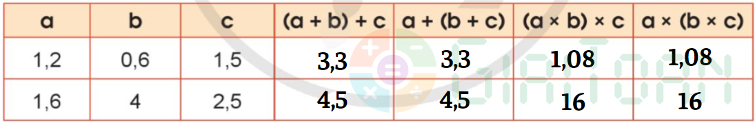 - Phép nhân các số thập phân có tính chất kết hợp: