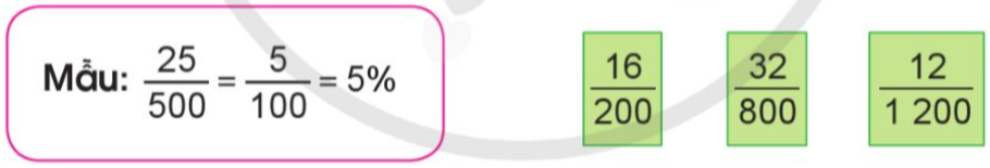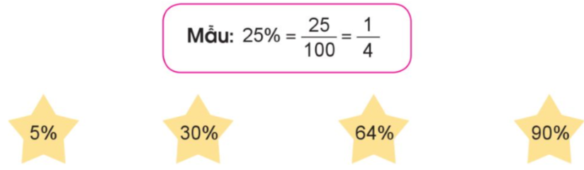 b) Biểu diễn tỉ số phần trăm dưới dạng phân số (theo mẫu):